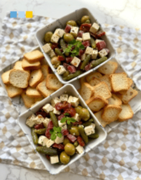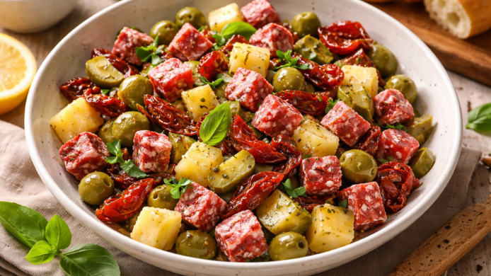 Entre los aperitivos de moda, este es uno de los que forman parte de la realeza. Corta el fuet en dados ligeramente más gruesos de lo habitual. Haz lo mismo con un buen queso curado y añade tomates secos troceados. Incorpora aceitunas y pepinillos, mezcla todo en un bol y aliña con aceite de oliva y zumo de limón. Si buscas un punto extra de intensidad, añade un chorrito de vinagre de Módena.