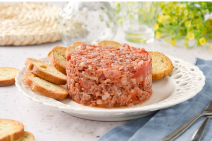Un tartar de fuet es todo un ejercicio de paciencia, aunque de los que valen la pena después. Pela el fuet completamente y pícalo muy fino para lograr una textura homogénea. Mezcla con alcaparras, cebolleta picada, mostaza en grano, unas gotas de salsa Perrins y una yema de huevo. Añade un chorrito de aceite de oliva y unas gotas de tabasco al gusto. Sirve con crackers o galletas saladas para un bocado lleno de carácter.