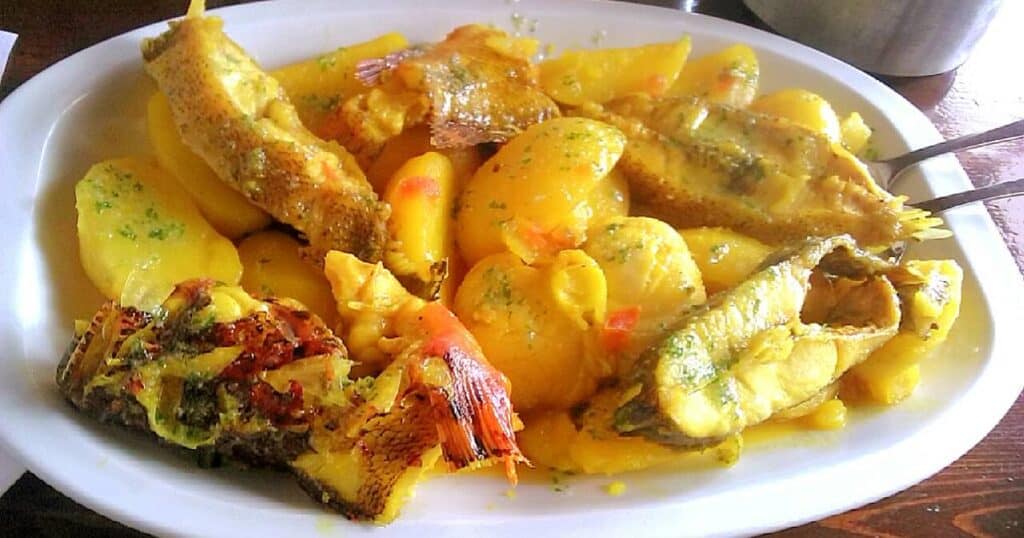 Lo que más llama la atención de esta preparación tradicional ibicenca es que integra diversos «pescados de roca», aquellos que se encuentran cerca de las zonas rocosas: rape, cabracho o mero, entre otros.
