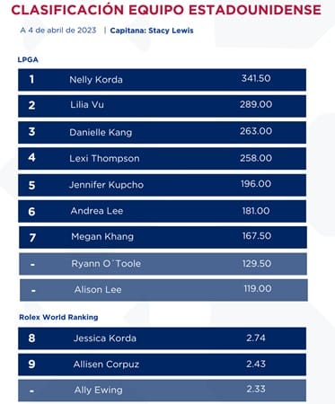 Tras la última competición celebrada, los equipos de Europa y Estados Unidos al día de hoy , y en virtud de los puntos que han conseguido , la clasificación provisional es la siguiente: