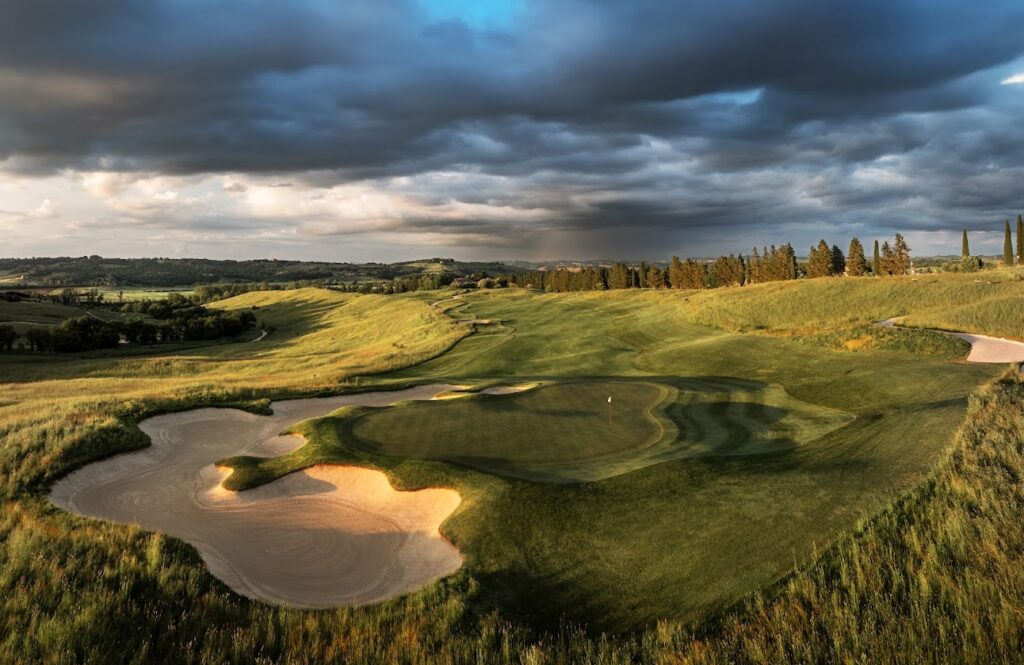 La arquitectura de campos de golf moderna se basa en el concepto de riesgo y recompensa. Muchos hoyos están diseñados para ofrecer varios caminos hacia el green. Un jugador puede elegir una línea más segura, aunque implique más golpes, o intentar un camino más directo que conlleva mayores riesgos.