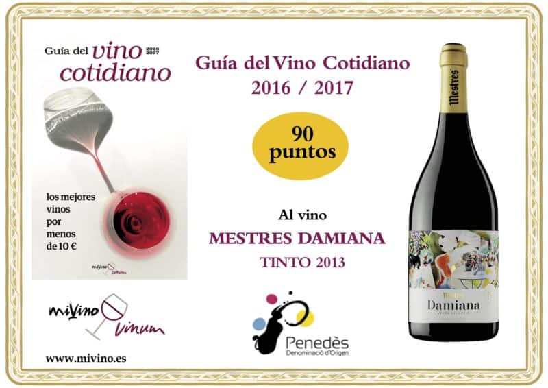 Mestres VISOL 2010 ha sido premiado con el DECANTER PLATINUM como el mejor cava a partir de los 18€ y con 95 puntos. Así mismo, el vino Mestres Damiana Tinto 2013