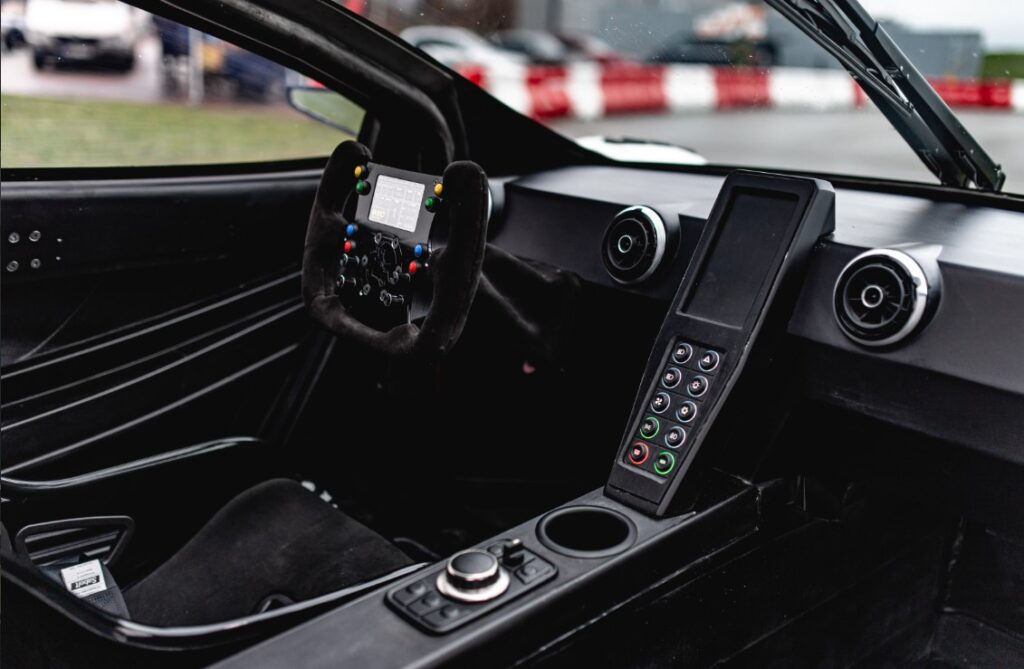 Las opciones de entretenimiento y navegación se integran sin problemas a través de Apple CarPlay y Android Auto en la unidad principal, controlados mediante un mando giratorio personalizado. El chasis de aleación de aluminio de clase 6061T6, con una barra antivuelco incorporada, está diseñado para proporcionar una protección completa al conductor. Mientras tanto, el cuerpo ultraligero de GFRP con refuerzo unidireccional está concebido para ofrecer resistencia sin comprometer la estética.