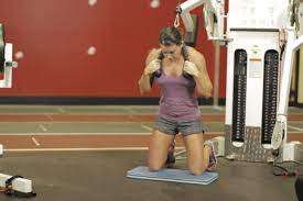 Arrodíllate con cualquiera de tus piernas hacia adelante y frente a la máquina de musculación.