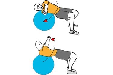 Ponte boca arriba sobre la pelota de estabilidad sosteniendo una pesa o mancuerna con ambas manos y extendiendo ambos brazos
