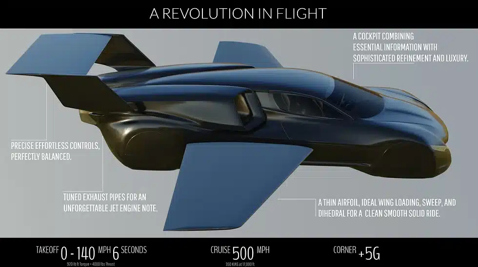 El diseño está firmado por el genio de Greg Brown , padre de muchos modelos de la F-1 , y ahora con un trabajo fuera de lo normal donde de mezcla el super deportivo, y el jet privado.
