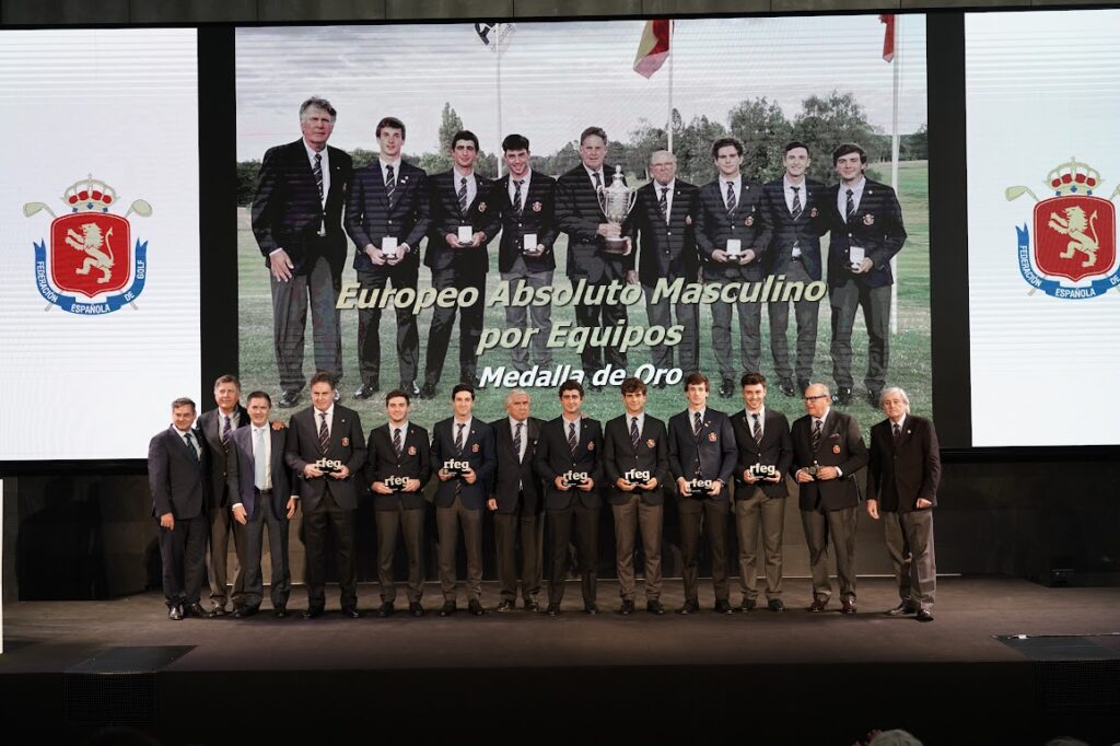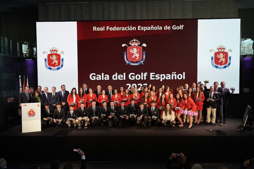 En el ámbito puramente deportivo, se han entregado trofeos de reconocimiento a las decenas de golfistas que han conseguido triunfos internacionales a lo largo de un 2023 absolutamente excepcional, tanto en competiciones amateurs como profesionales, con mención especial para las seis medallas de oro acumuladas en Campeonatos de Europa de distintas categorías y los dieciocho triunfos de carácter profesional obtenidos durante el año en todos los Circuitos.