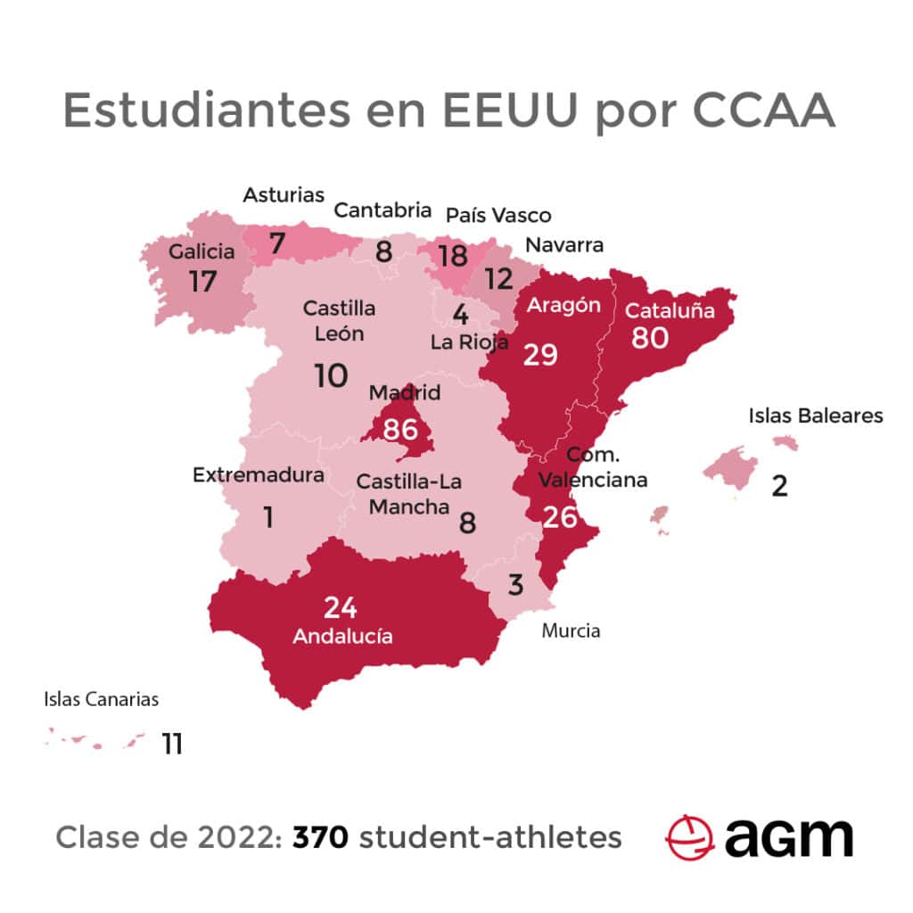 AGM, es un experto en becas para universidades de Estados Unidos. Esta empresa española que lleva más de 15 años ayudando a los estudiantes y a deportistas españoles a obtener una educación de calidad en Estados Unidos, ha anunciado que durante este curso 195 chicos y 175 chicas españoles han decidido hacer las maletas y estudiar en alguna de las más de 1.200 universidades de EEUU. La beca deportiva media conseguida por estos estudiantes ronda este año los 25.500 euros por curso.