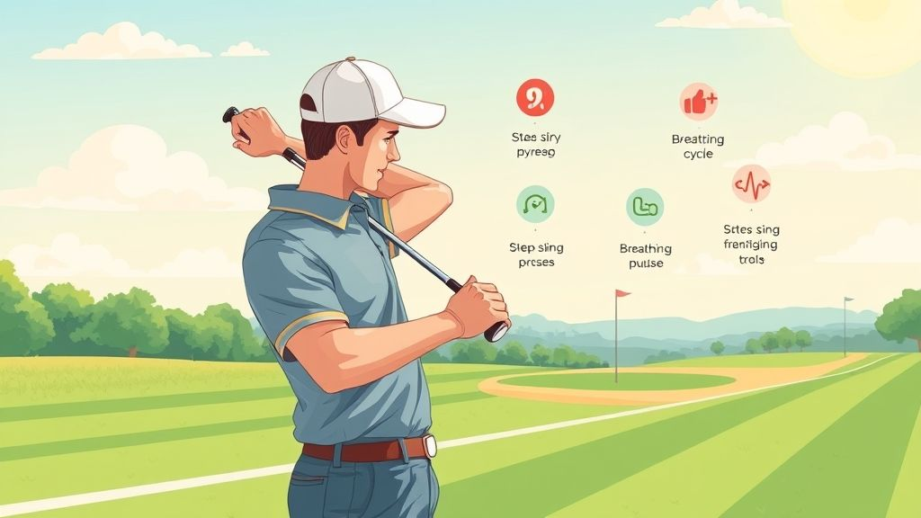 Considera el HRV biofeedback: te guía a ritmos respiratorios coherentes —unas 6 inhalaciones por minuto— que activan el nervio vago, calmando el sistema nervioso simpático y promoviendo relajación profunda. Esto no solo baja el pulso; optimiza el flujo de oxígeno al cerebro, afilando la toma de decisiones y suavizando los movimientos. Investigaciones confirman que esta regulación directa impacta la consistencia: un corazón rítmico equivale a un tempo de swing armónico, reduciendo desvíos en el impacto y elevando la distancia controlada.
