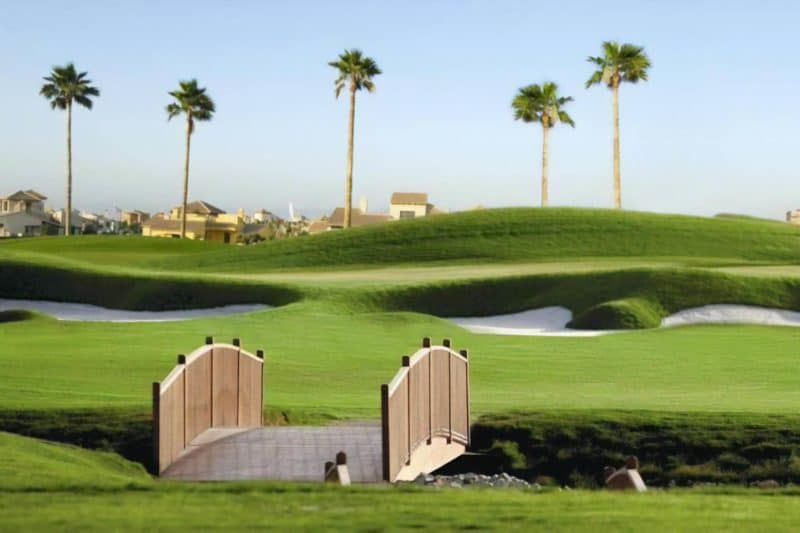 Y será en uno de los diseños de mayor prestigio de la geografía nacional, el campo de Hacienda del Álamo, diseñado por el reconocido Dave Thomas. El consagrado arquitecto cuenta con más de 100 recorridos por todo el mundo. Varios de ellos en España. Con 18 hoyos, Par 72, encuadrado en 6.700 metros, Hacienda del Álamo es uno de los campos más largos al sureste de España, rodeado de ocho lagos y cascadas, a los pies de la Sierra de Carrasco y a pocos minutos de Murcia.