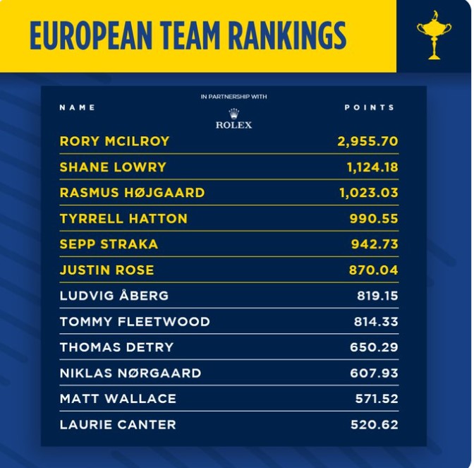 Rory McIlroy sumó 835 puntos al vencer en el Masters el mes pasado, la mayor cifra de la temporada, solo superada por Tyrrell Hatton, que lideró varias pruebas a lo largo del año. Por su parte, Justin Rose añadió 555 puntos al caer en un play-off,ascendiendo del puesto 28 al cuarto.