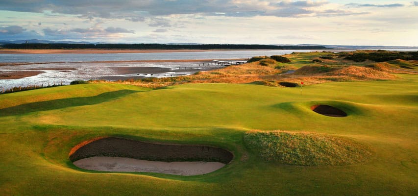 El lugar de nacimiento del golf cuenta con bunkers ciegos, enormes greens dobles, peculiaridades como Road Hole e Hell Bunker y opciones estratégicas que varían con el viento del día.